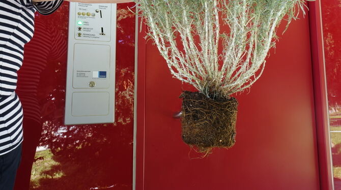 Eines kann die Putzfrau des Pomologie-Klohäuschens jedenfalls sagen: Selbst 50 Cent schützen das Häuschen scheinbar nicht vor dem Verwüstungswillen mancher Menschen. Sie läuft einmal um die Ecke und greift nach einem Gewächs, das auf dem Boden liegt: »Das habe ich heute im Klo gefunden«, sagt sie kopfschüttelnd. Unbekannte hätten es in die Schüssel gesteckt und mit Klopapier »garniert«. Wohlbemerkt: Ins Sitzklo, für dessen Zugang sie zuvor 50 Cent zahlen mussten. Nicht ins kostenlose Pissoir. (GEA)