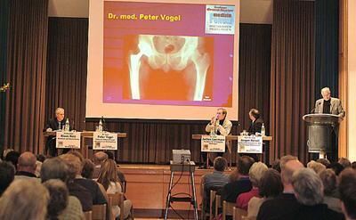 Aufmerksamkeit im Publikum wie auf dem Podium für die Operationstechniken bei Hüftgelenksarthrose.
