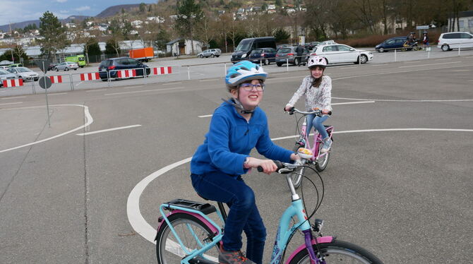 REUTLINGEN. »Wir sind hier, damit die Jüngste mal ohne Stützräder an ihrem kleinen Fahrrad fahren kann – ohne die Gefahren des Autoverkehrs«, sagt Jürgen Mohr. Reutlingens ehemaliger Dekan war an diesem Mittwochnachmittag mit seinen drei Enkelinnen auf dem Verkehrsübungsplatz. Die Möglichkeit, sich unter Realbedingungen auszuprobieren, gibt es seit diesem März auf dem Platz an der Kreuzeiche.