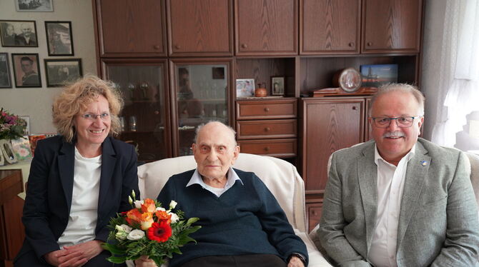 REUTLINGEN-OHMENHAUSEN. Einen ganz besonderen Geburtstag hat Herbert Kalmbach gefeiert: Der rüstige Ohmenhäuser wurde 100 Jahre alt. Baubürgermeisterin Angela Weiskopf und der stellvertretende Bezirksbürgermeister von Ohmenhausen, Werner Koch, überbrachten die Glückwünsche von Oberbürgermeister Thomas Keck und Ministerpräsident Winfried Kretschmann. Auch ein Schreiben des Bundespräsidenten traf rechtzeitig per Post ein – eine Ehrung, die nur wenigen zuteilwird.