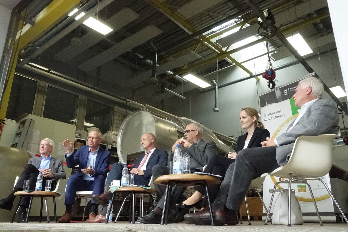 Standen Rede und Antwort (von links): Harald Dallmann, Vizepräsident Lehre der Hochschule Reutlingen, Kanzler Alexander Leisner, Hochschulpräsident Hendrik Brumme, Bastian Kaiser, Vorsitzender der Rektorenkonferenz der Hochschulen für Angewandte Wissenschaften Baden-Württemberg, Petra Kluger, Vizepräsidentin Hochschulentwicklung, und Gerhard Gruhler, Vizepräsident Forschung der Hochschule Reutlingen.