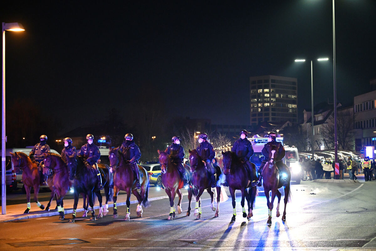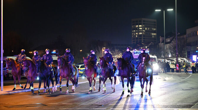 Während des Demonstrationszugs mussten mehrere Straßen zeitweise gesperrt werden. Die Beamten der Reutlinger Polizei wurden unterstützt von der berittenen Polizei des Polizeipräsidiums Einsatz sowie Beamten der Stuttgarter Polizei. (GEA)