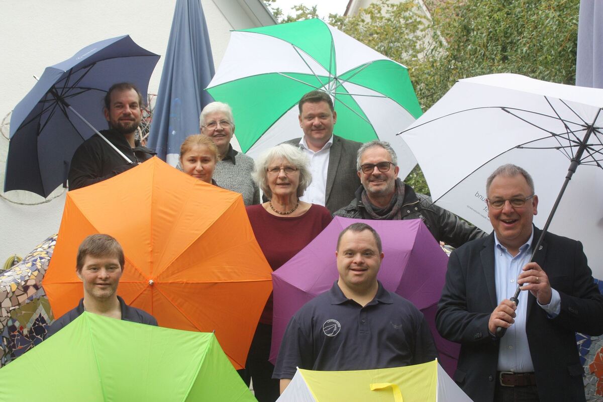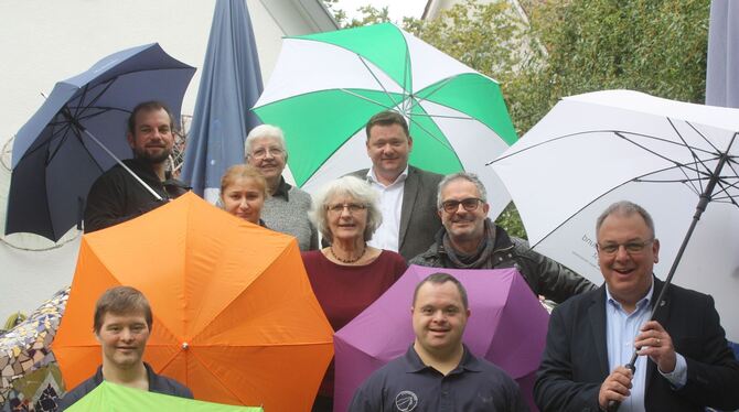 Wollen 20 Jahre Kultur vom Rande groß feiern (von links): Mathias Stöckl (Kaffeehäusle), Markus Christ (Kultur vom Rande), Sibel Peker (Kaffeehäusle), Elisabeth Braun (Kultur vom Rande), Rosemarie Henes (Kultur vom Rande), Andreas Lehmann (Kreissparkasse), Harald Beck (Kaffeehäusle), Enrico Urbanek (Theater Die Tonne) und Thomas Keck (Oberbürgermeister und Festival-Schirmherr). FOTO: STRÖHLE