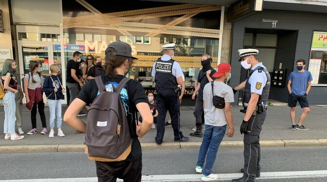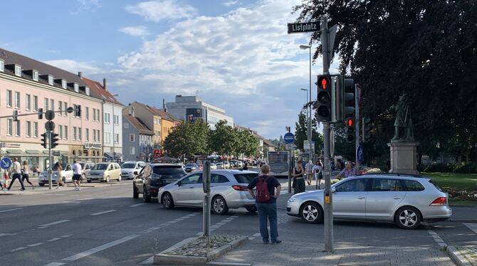 Um ein Verkehrschaos zu verhindern, werden Fahrzeuge, die auf der Karlstraße nach Tübingen unterwegs sind, von der Polizei über Silberburg-, Bahnhofstraße und Listplatz umgeleitet. Dort übernehmen Polizisten die Aufgaben der Ampeln. Zu einem kompletten Verkehrschaos kommt es nicht, aber natürlich staut es sich mehr als gewöhnlich um diese Uhrzeit. Den Aktivisten ist das gerade recht. »Autos sind kacke«, ruft jemand. Der darauf folgende Applaus geht direkt über in den Gesang der üblichen FFF-Klassiker: »Wer nicht hüpft, der ist für Kohle«, »Wir sind hier, wir sind laut, weil ihr uns die Zukunft klaut« und »Klatscht in die Hände - Verkehrswende«.