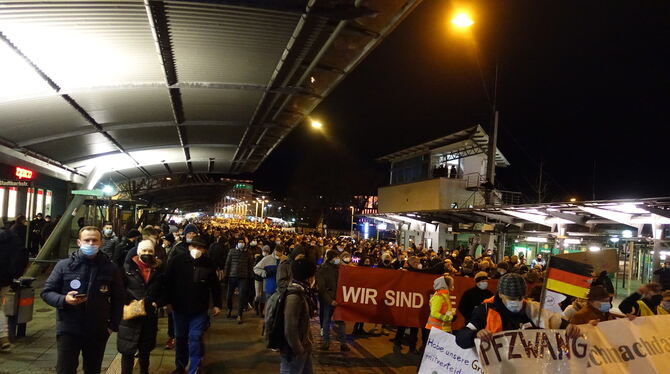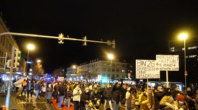 REUTLINGEN. Was sich am Samstagabend bereits angedeutet hatte, wurde in der Nacht von der Polizei bestätigt: Bei der genehmigten Demonstration gegen die Pandemie-Maßnahmen waren es dieses Mal mehr Teilnehmer als bei früheren Protestzügen.