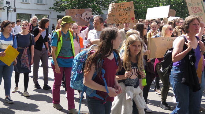 REUTLINGEN. Lautstark skandiert die Reutlinger Fridays-for-Future-Bewegung mit ihrem Demozug: »Wehrt euch, jetzt muss was passieren, sonst nimmt der Klimawandel überhand.« Grund der Demonstration ist der globale Aufruf zum Klimastreik vor der Europawahl.