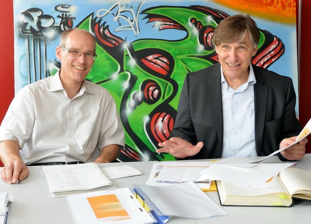 Der Stiftungsvorstand mit GWG-Chef Karl-Heinz Walter und Uwe Weber, Leiter des Amtes für Schulen, Jugend und Sport, blickte auf die Historie der Stiftung zurück und gab auch einen Ausblick, was zum Jubiläum alles geboten wird.