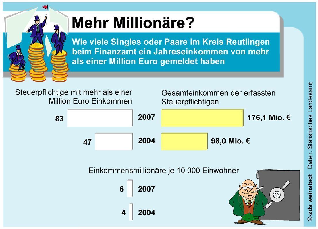 Auch im Kreis Reutlingen hat die Zahl der Einkommensmillionäre stark zugenommen. GRAFIK: zds