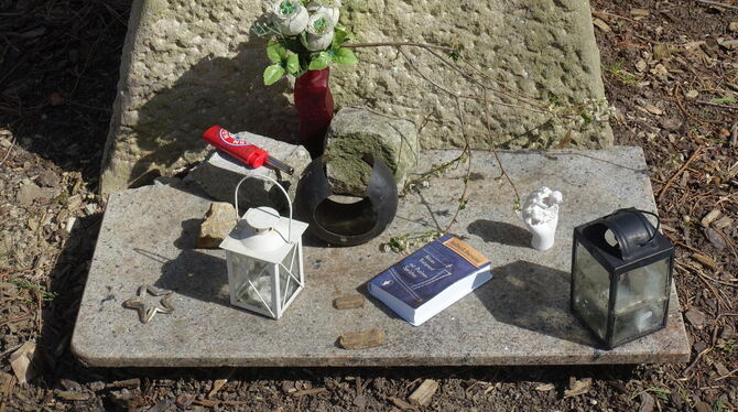 Denn der HAP Grieshaber Weg führt direkt zum ehemaligen Wohnort des großen Holzschneiders. Die Ansammlung von Hütten ist vom Zahn der Zeit stark mitgenommen, blaue Folie schützt die Dächer. Jedoch haben Kunstfreunde dafür gesorgt, dass sich Vergangenheit und Gegenwart an diesem geschichtsträchtigen Ort vereinen: In Sichtweite des Hauses steht eine Replik des von HAP Grieshaber 1959 geschaffenen Objekts »Poseidon und Amphitrite«. Es handelt sich dabei um ein Glaskristallmosaik, das im Licht der Sonne strahlt. Eine Ruhebank davor lädt zum Verweilen ein. (GEA)