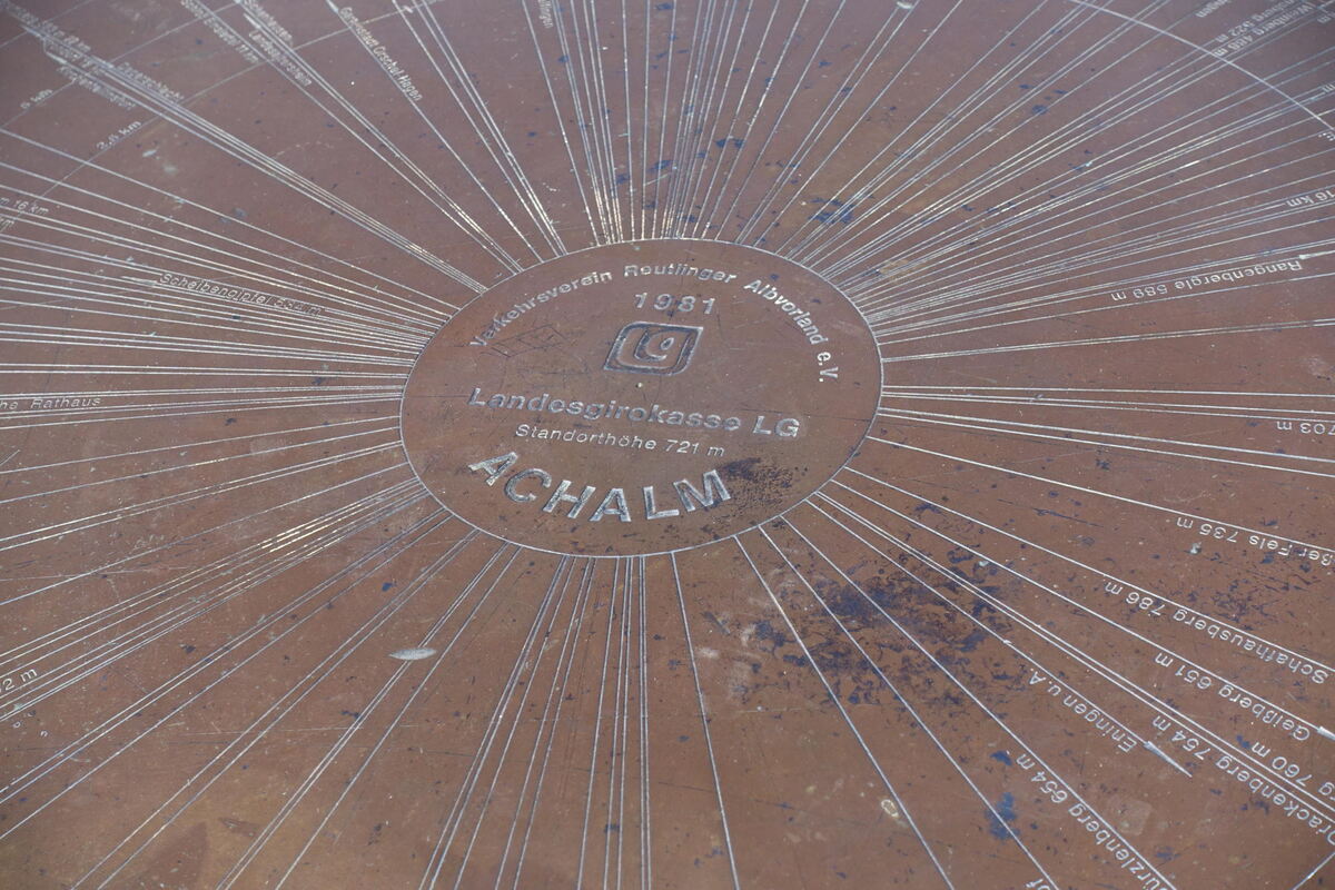 Zwei Holztische mit Bänken sind ebenso wie eine gemauerte Feuerstelle ganzjährig geöffnet, und weil hier noch nie irgendein Kiosk oder Cafe gewesen ist, fällt der gastronomische Shut-Down auch nicht unangenehm auf. Abenteurer packen jetzt die Thermoskanne mit Kaffee und ein süßes Stückchen aus ihrem Rucksack aus. Oben auf dem Turm zeigt eine kreisrunde Plakette in welche Richtung was zu erblicken ist. Der Rundumblick ist atemberaubend. Klar wieso hier viele Menschen gerne Urlaub machen. Wem Natur pur nicht ausreicht, nimmt beim Abstieg noch eine Portion Kunst mit.