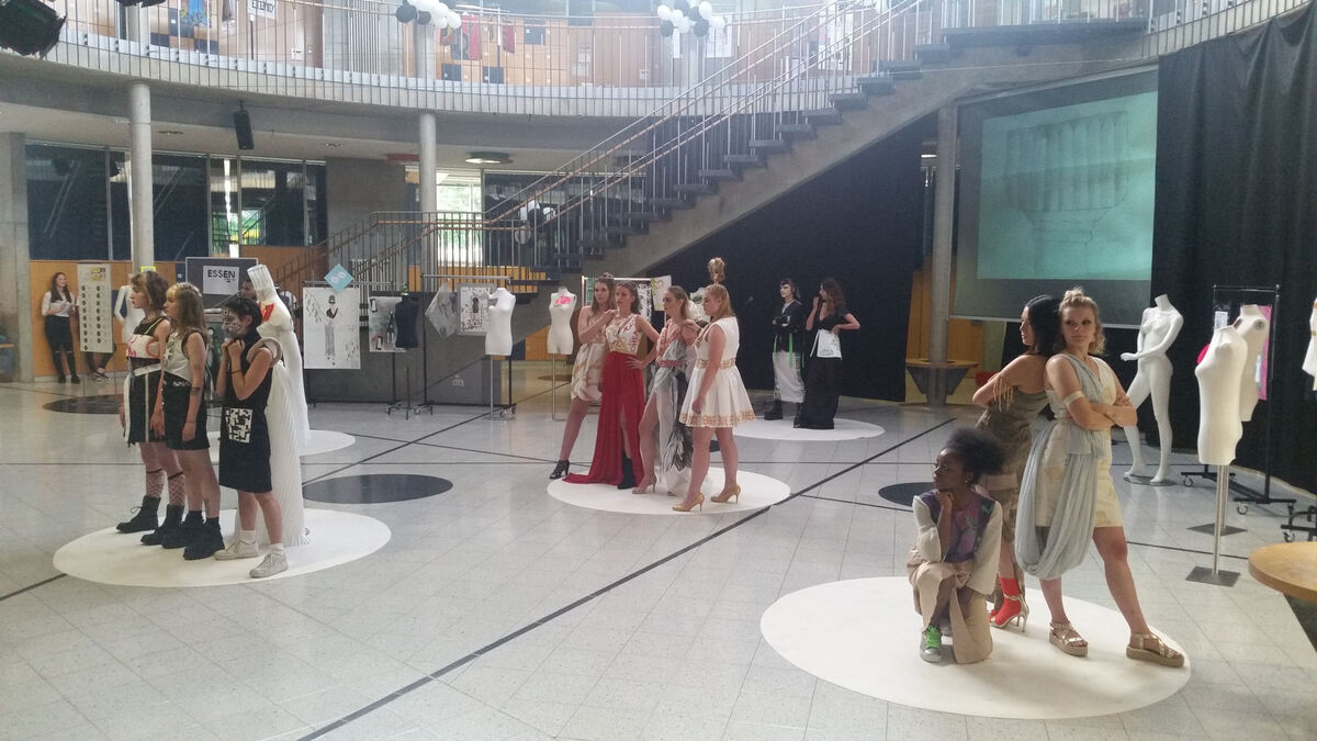 Nach Kontaktaufnahme beider Institutionen stand rasch fest, dass ein Designprojekt in Angriff genommen werden sollte. Ausgeguckt haben sich Gymnasiasten und Modeschüler das Motto »Antike Goes Pop«. Während die Rommelsbacher HGG’ler fürs Stoffdesign verantwortlich zeichneten, waren die Metzinger schwerpunktmäßig mit Entwürfen und Kleidungsschnitten betraut.