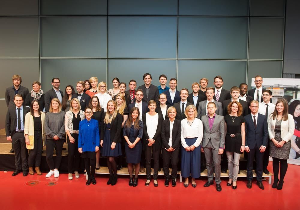 Gruppenbild der schlauen Köpfe: Die Semesterbesten bei der Absolventenverabschiedung. FOTO: HOCHSCHULE
