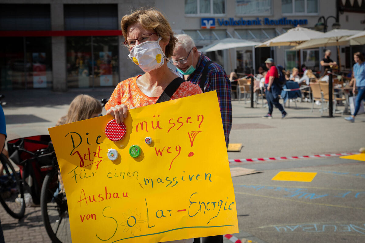 REUTLINGEN. Die Sonne ist am Donnerstag in Reutlingen rausgekommen: Sie strahlte am Himmel und plötzlich auch auf dem Marktplatz. Im Rahmen einer bundesweiten Aktion der Klimaschutzbewegung »Parents for Future« demonstrierten besorgte Eltern, Kinder und Großeltern am gestrigen Nachmittag auch in der Reutlinger Innenstadt für mehr Solarenergie und den Kohleausstieg. Ihr Motto: »Mehr Solarenergie für Reutlingen. Reutlingen klimaneutral bis 2035«.