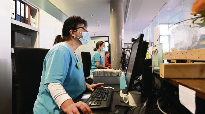 Die überwiegende Mehrheit der Patienten am Empfang des Chirurgisch-Orthopädischen Zentrums Neckar Alb in Reutlingen verhält sich vollig korrekt. Leider häufen sich in Arztpraxen in der Region aber Fälle von Beleidigungen und mündlichen Angriffen.
