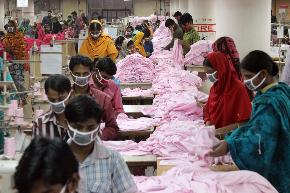Frauen und Männer in einer Textilfabrik in Gazipur, einem Vorort der Hauptstadt Dhaka in Bangladesch. FOTO: DPA