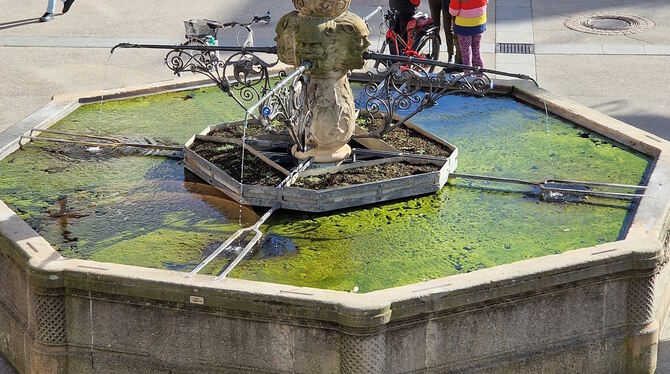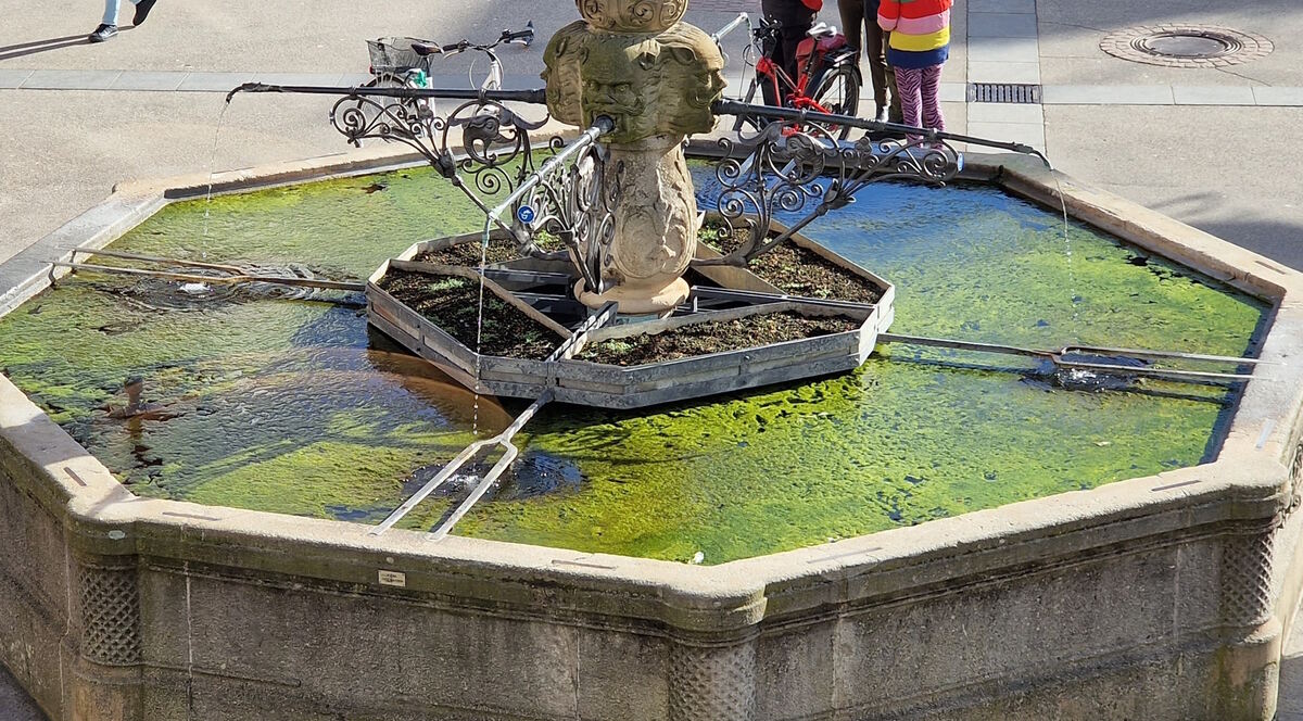 Algen im Maximilianbrunnen: »In keiner anderen vergleichbaren Kommune wird so nachlässig mit historischen Brunnen umgegangen«, beklagt Stadtrat Straub.