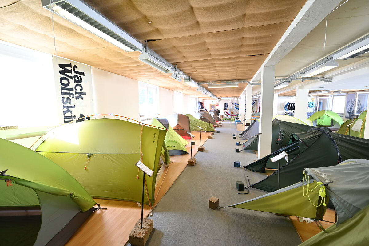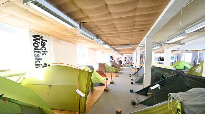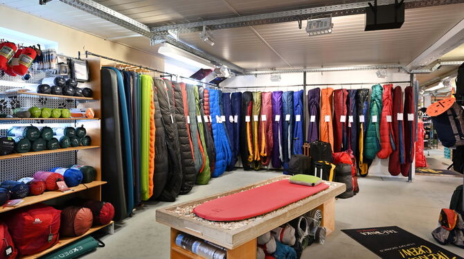 Was sie zum Wandern, Klettern, für Bergsport und zum Campen brauchen, finden Outdoor-Freunde im Tramperhaus in der Kaiserstraße 52 in Reutlingen. Im ersten und zweiten Obergeschoss wird auf rund 800 Quadratmetern die ganze Bandbreite an Outdoorausrüstung angeboten. Angefangen bei Schuhwerk, von der Trekkingsandale bis zum steigeisenfesten Alpinschuh, allerlei Rucksäcken, Schlafsäcke, Isomatten, über Bekleidung bis hin zur Kletter- und Boulderausrüstung wie Kletterschuhe, Seile, Crashpads und Steigeisen. Die Ausstattung für die Outdoorküche gehört natürlich ebenfalls dazu. Im zweiten Obergeschoss ist eine große Auswahl an Zelten zu sehen. Ob preisgünstiges Festivalzelt, Familienzelt, Ultraleichtmodell oder High-End Alpinzelt – mehr als zwei Dutzend Modelle stehen da, zum Anschauen und Probeliegen.
