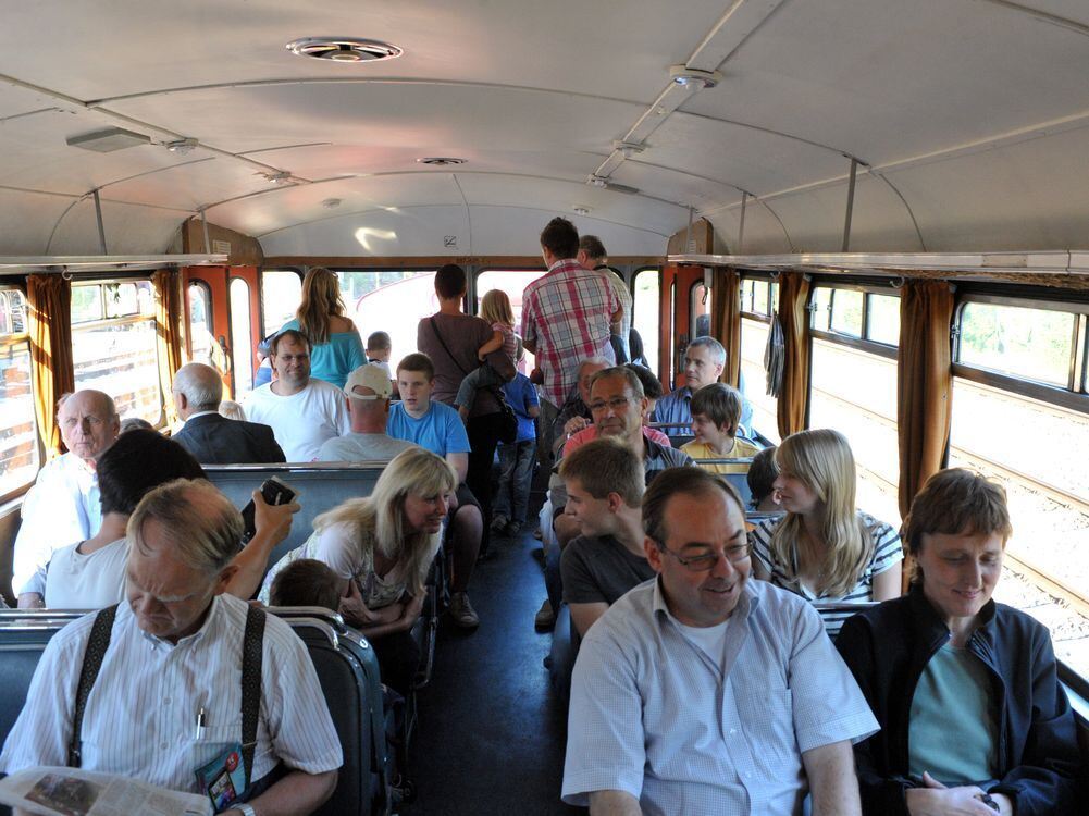 Fahrt im alten Schienenbus (links) oder ein Blick auf die Dampflok: Nostalgiefans genossen »die alten Schätzchen«. Foto: Alexander Thomys