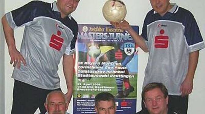 Sie zogen bei der Organisation des Fußball-Master-Turniers im Kreuzeiche-Stadion die Fäden: Volker Reiff und Joachim Weise (stehend) sowie Karl-Dieter Weiss, Jürgen Leguttky und Waldemar Gorzolla (sitzend, jeweils von links).