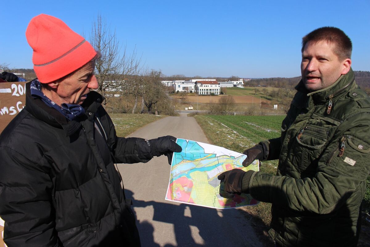 Günther Brändle (links) von der Altenburger Bürgerinitiative und Bezirksbürgermeister Frank Hofacker erläutern die Erweiterungspläne.