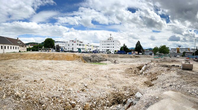 An der Einmündung der Straße »Am Heilbrunnen« zur Max-Planck-Straße versperrten vor Kurzem noch hohe Hallen den Blick. Jetzt tut sich eine riesige Baugrube auf.
