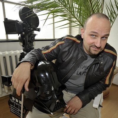 Mit der Maske des unbesiegbaren »Darth Vader« im Arm: der Reutlinger Filmemacher Dominik Kuhn.
