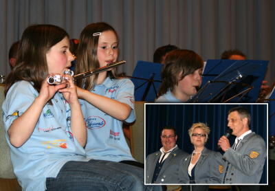 Junge Kräfte wirken bei der Blasmusik des TSV Sondelfingen - an den Instrumenten wie auch im neuen Abteilungsleitungsteam. Letzteres wurde in der Sondelfinger Festhalle durch (kleines Foto, von links) Stefan Mollenkopf, Friederike Utta und Thomas Thümmel repräsentiert.