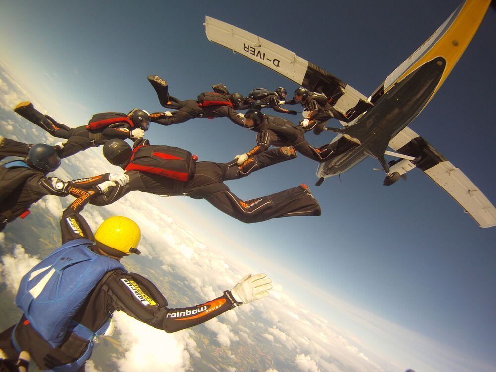 Antje Prochnow in einer Achterformation beim »exit«, dem Sprung aus dem Flugzeug. FOTOS: PR