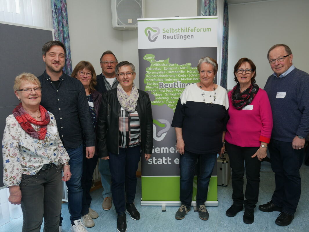 Die Vertreter der Selbsthilfegruppen im Landkreis informierten sich über das Thema Digitalisierung (von links): Angelika Walter, Referent Jan Siegert, Sigrun Schröder, Achim Scherzinger, Maria Luik, Ute Zeile, Edith Neubert und Werner Müller. FOTO: LEISTER