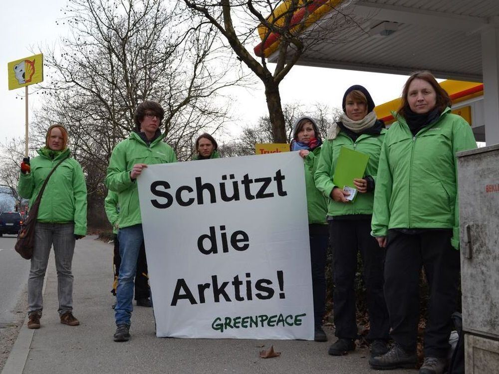 Stiller Protest vor der Shell-Tankstelle: Greepeace-Aktivisten in Reutlingen. FOTO: ANTZ