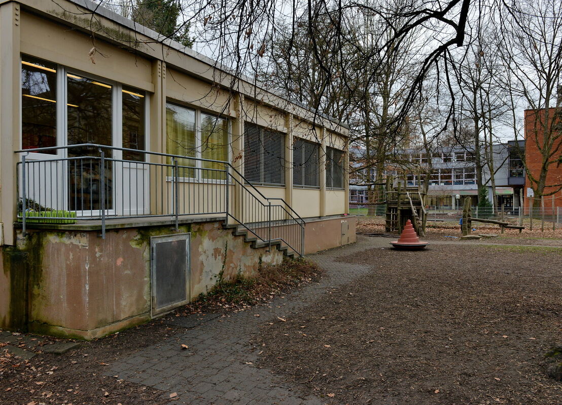 Der Kinderhort in der Charlottenstraße (Vordergrund) weicht einem Kita-Neubau mit Mensa fürs IKG (im Hintergrund). FOTO: NIETHAMMER