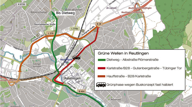 Auf diesen drei Routen sollen Autos in Reutlingen freie Fahrt haben