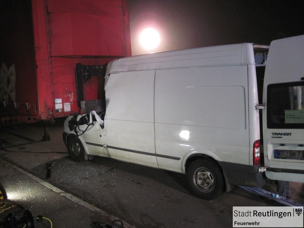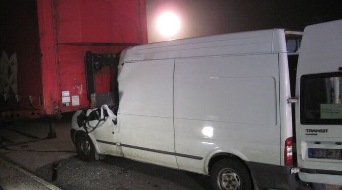 Durch die Wucht des Aufpralls wurde der Transporter bis fast zur B-Säule unter den Auflieger gedrückt. FOTO: FEUERWEHR