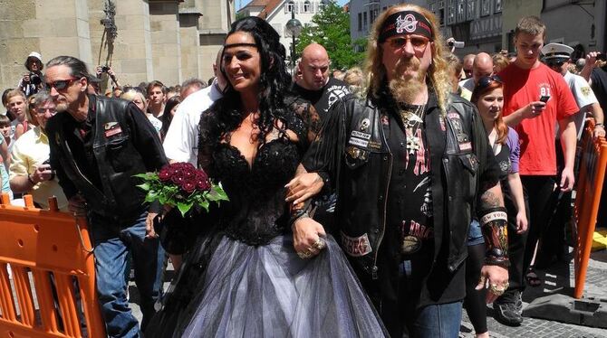 Hells-Angels-Heirat in Reutlingen: Die Braut auf dem Weg zum Altar. GEA-FOTO