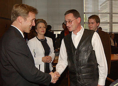 Gratulation für den neuen Reutlinger Finanzbürgermeister: Peter Rist (links) mit Dr. Werner-Felix Schobel (rechts), dazwischen Oberbürgermeisterin Barbara Bosch.
