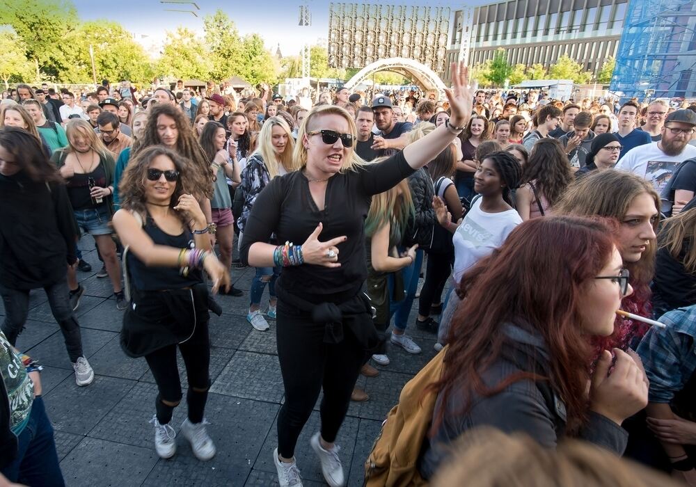 Feiernde Menschen, gutes Wetter und tolle Rockmusik auf dem KuRT-Festival im Bürgerpark.