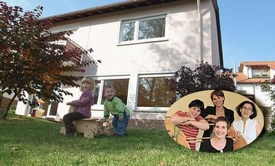 Anna, Martin, das »Spatzennest« und die Vorstandsfrauen Friederike Hahn (von links), Nikoline Mertz, Viktoria Peréz-Solorzano und Silke Schwab, die künftige Krippenleiterin.