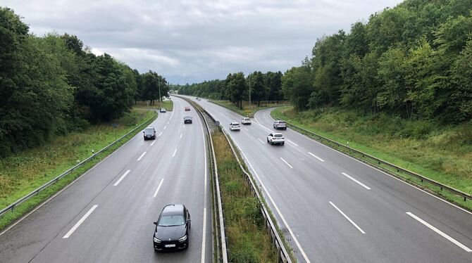 Auf diesem Streckenabschnitt der B28 will eine anonyme Gruppe Tempo 80 wegen der nahegelegenen Betzinger Flüchtlingsunterkunft.