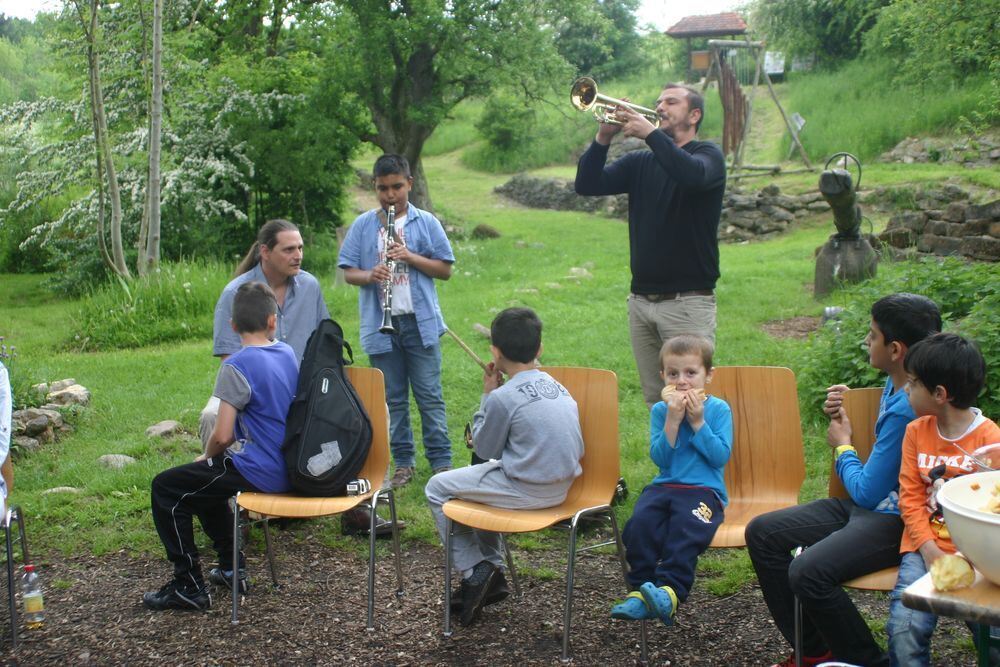 Furioses Gipsy-Finale der Flüchtlinge nach der Baumpflanzaktion und dem gemeinsamen Essen. FOTO: SPIESS