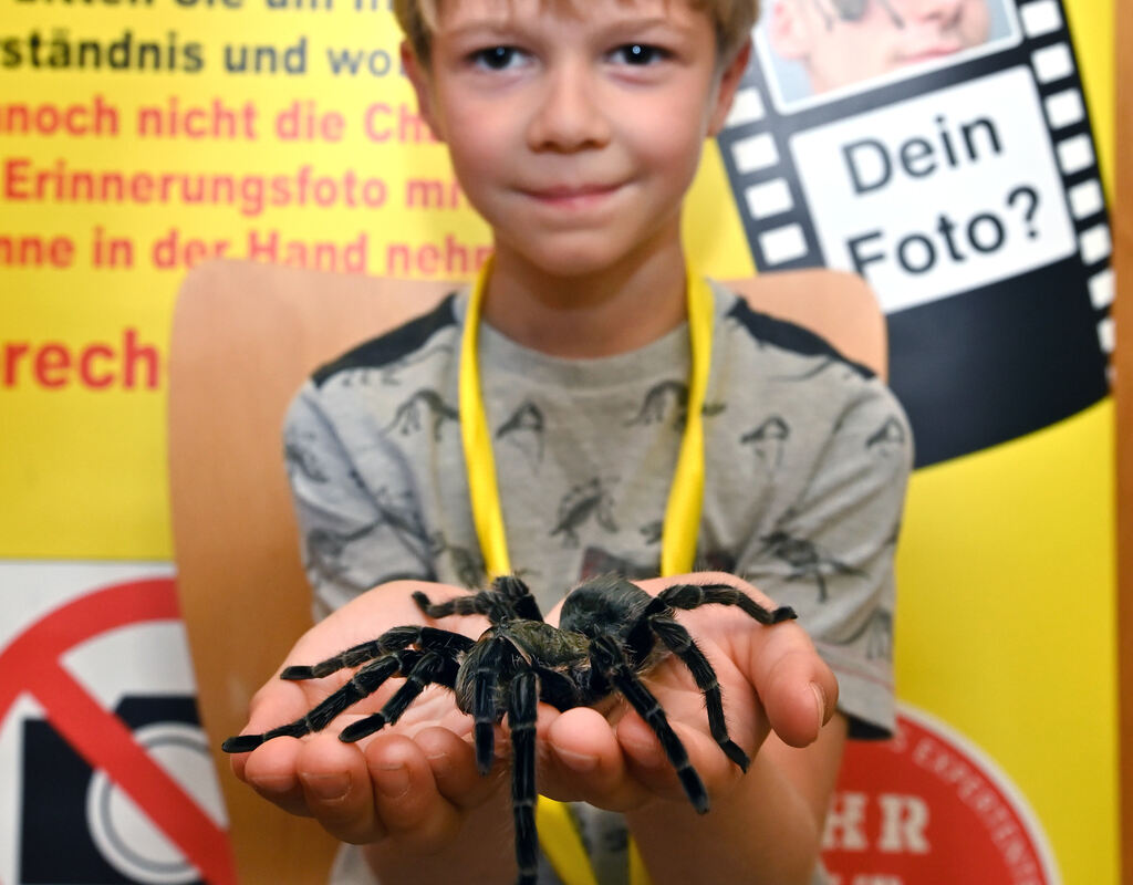 Ganz cool: Der sechsjährige Lars mit Vogelspinne.