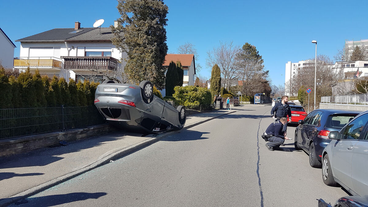 REUTLINGEN. Kopfüber ist ein Seat in der Justinus-Kerner-Straße nach einem Unfall auf dem Gehweg zum Liegen gekommen. Nach Polizeiinformationen hatte ein Mercedesfahrer hinter einem geparkten Auto gewartet, um einen Bus passieren zu lassen. Nachdem der Bus an der dortigen Haltestelle stehenblieb, wollte der Mercedes-Lenker an dem geparkten Fahrzeug vorbeifahren. Dabei übersah er den Seat einer 29-Jährigen, der im gleichen Moment überholte. Sie hatte das laut Polizei trotz unklarer Verkehrslage und nach derzeitigem Ermittlungsstand auch ohne die Geschwindigkeit zu verringern getan. Durch den Zusammenprall kam der Seat ins Schleudern und landete auf dem Dach. Die Justinus-Kerner-Straße wurde bis 16 Uhr voll gesperrt, um den Unfall zu räumen.