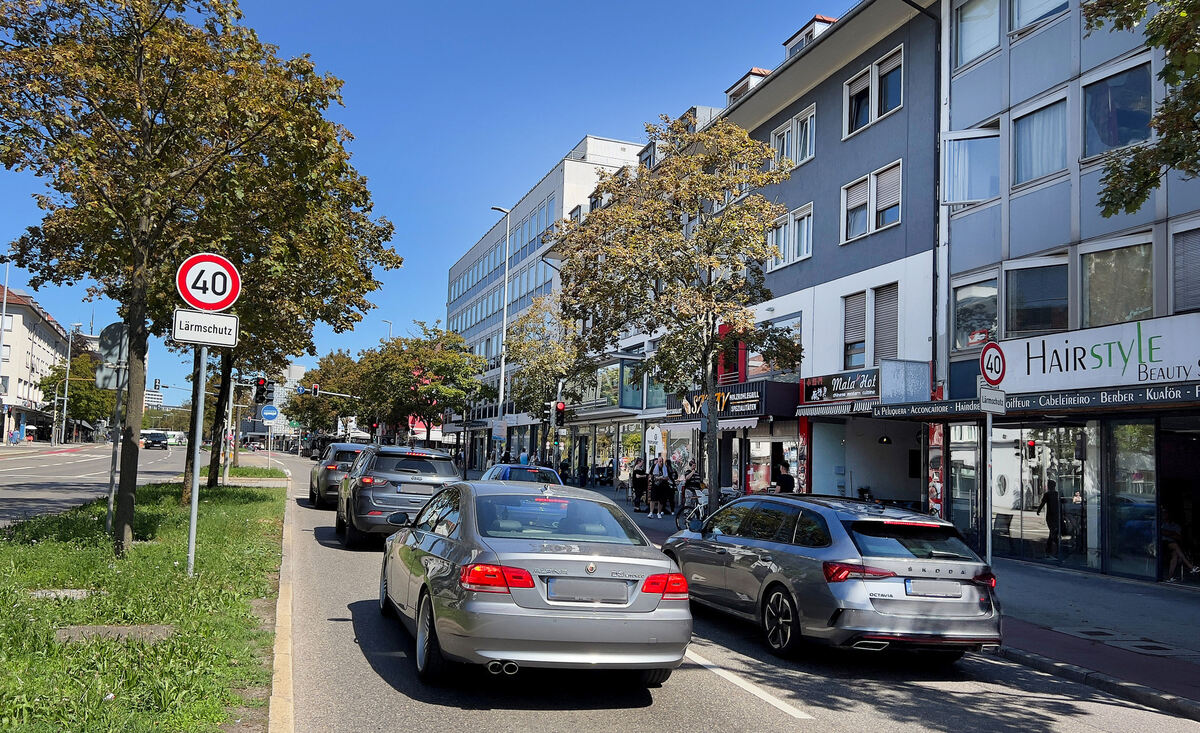 Die Karlstraße in Reutlingen zählt zu den stark befahrenen Hauptschlagadern der Stadt.