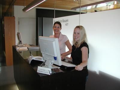 Der direkte Weg zum Roten Punkt: Melanie Rakus (rechts) hinterm Rathaustresen (mit Abteilungsleiterin Oda Gartenfeld).