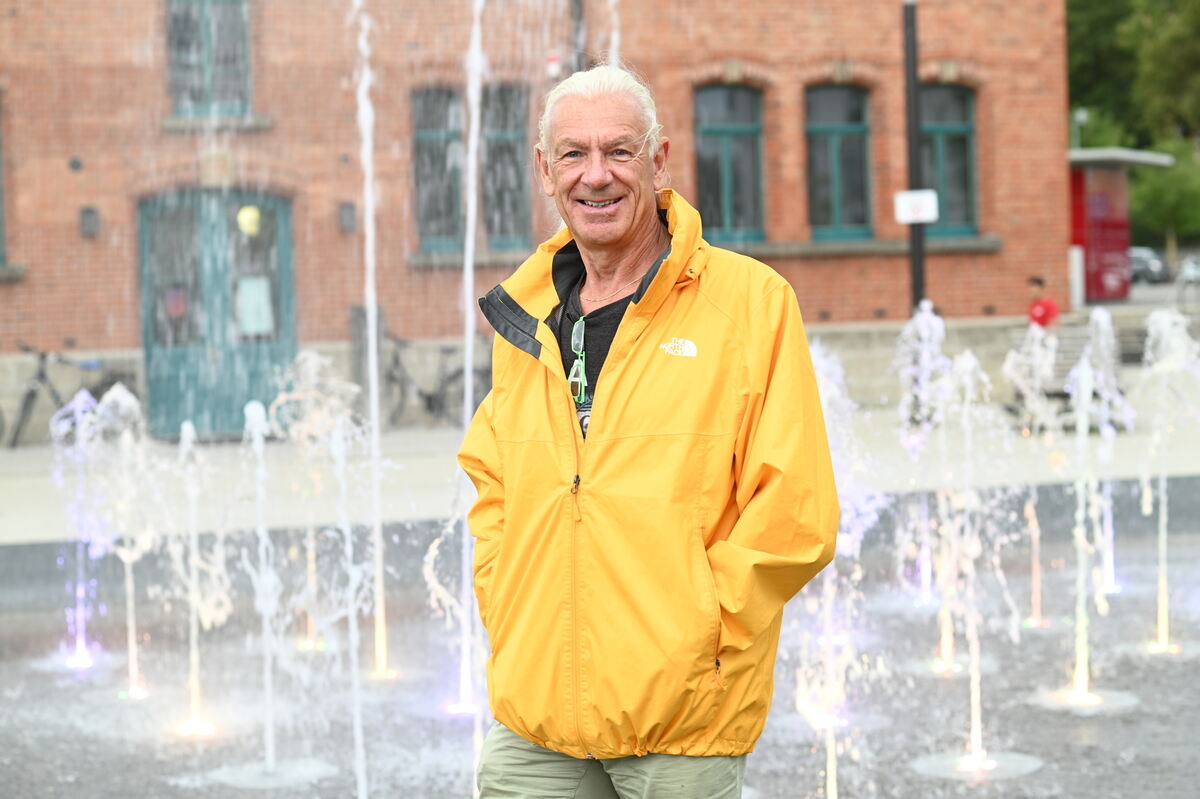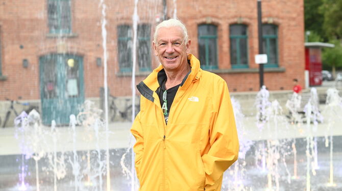 Der WiR-Fraktionsvorsitzende Professor Dr. Jürgen Straub vor den Wasserfontänen im Reutlinger Bürgerpark, den er gerne zu seinem Lieblingsplatz machen würde, wenn sich einiges verändert.