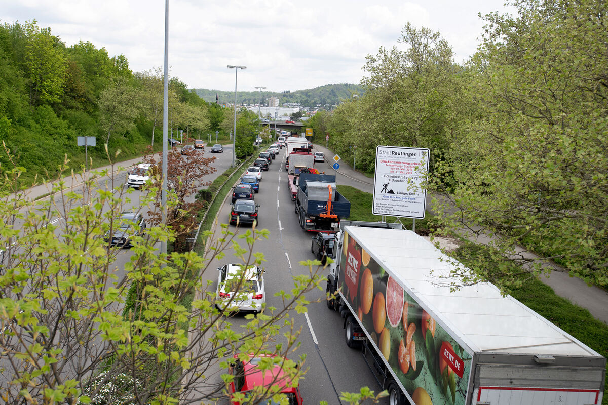 Etwa 40.000 Fahrzeuge verkehren täglich auf der Strecke, es wird spannend zu beobachten sein, welche fantasievollen Ausweichrouten die Autofahrer sich durch die Stadt ausdenken werden, um die Baustelle umgehen zu können. Die Arbeiten des ersten Bauabschnitts werden wohl bis Oktober dieses Jahres andauern. Aber so genau kann das niemand voraussagen, weil es immer wieder zu unliebsamen Überraschungen kommen kann. Auf dem riesigen Hinweisschild der Stadt Reutlingen haben die städtischen Mitarbeiter schon an die strapazierten Nerven der Autofahrer gedacht. In blauer Schrift mahnen sie zur Geduld: »Gute Brücke, gute Fahrt« steht da geschrieben samt Servicenummer, unter der das Amt für Tiefbau, Grünflächen und Umwelt Fragen beantwortet.