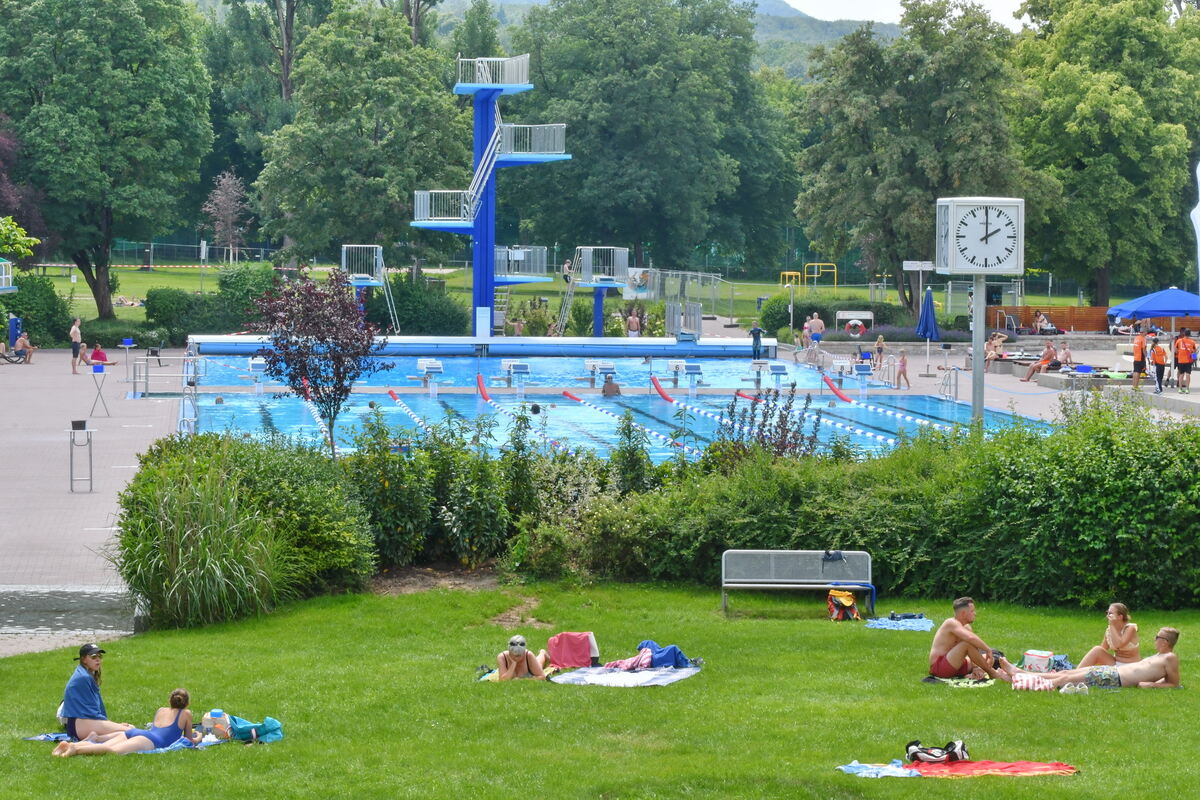So entspannt war es bei dreißig Grad im Wellenfreibad in den letzten Jahren wohl nie. Statt dicht an dicht zu liegen, hat jeder Besucher genug Platz: Corona hat auch Vorteile. FOTO: MEYER