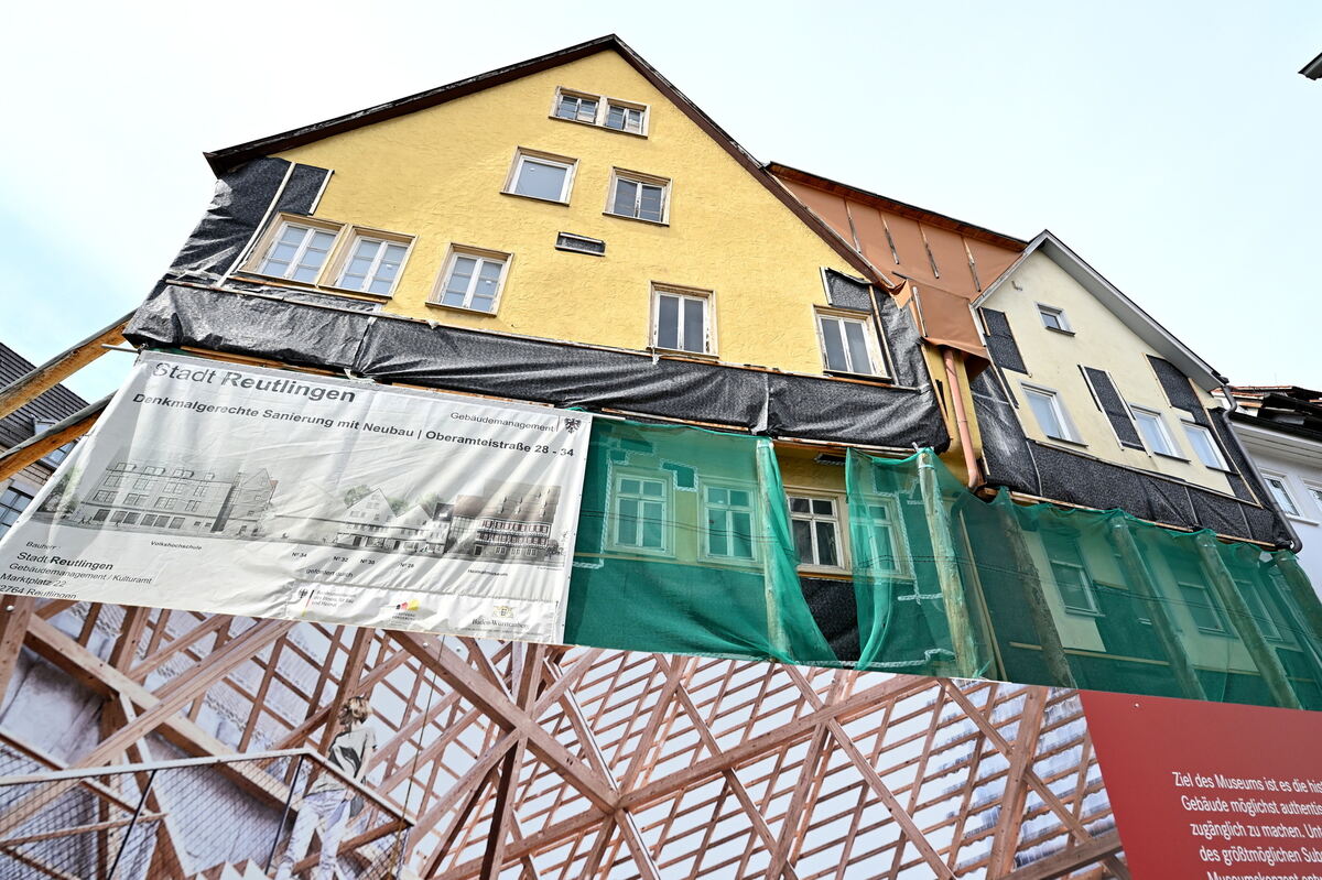 Das ambitionierte Projekt startete bereits im Januar. Seit Anfang März steht der Baukran, und nun sind auch die Zimmermänner in den sanierungsbedürftigen Bauten zugange, deren Gemäuerreste sich teilweise bis ins 13. Jahrhundert zurückdatieren lassen. Doch es bleibt nicht nur bei der Sanierung: Auch ein Neubau ist in der seit 50 Jahren klaffenden Lücke geplant, die der Abbruch des Steinernen Hauses (Oberamteistraße 34) im Jahr 1972 hinterlassen hat, zwischen der Volkshochschule und den historischen Bauwerken. »Der Abbruch erfolgte zu früh, seitdem hat sich das Bauensemble gefährlich geneigt«, erklärte Baubürgermeisterin Angela Weiskopf. Bevor die Arbeiten an dem neuen Glasbau beginnen können, müssen die historischen Häuser daher erst fachgerecht stabilisiert werden.