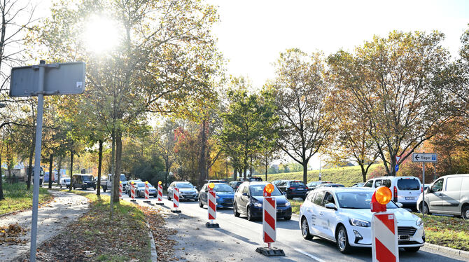 REUTLINGEN. Ab Montag, 24. April, bis voraussichtlich Freitag, 28. April, errichtet das städtische Amt für Tiefbau, Grünflächen und Umwelt in der Schieferstraße/B28 zwei provisorische Überfahrten zwischen der Einmündung der Emil-Adolff-Straße und der Brücke Hochstraße. Die Provisorien sollen in der Zeit der Sanierungsarbeiten in der Schieferstraße, die Anfang Mai beginnen, die Zufahrt zu den Betrieben gewährleisten, die auf dem ehemaligen Emil-Adolff-Areal ansässig sind. Für diese Arbeiten muss die links Fahrspur in Fahrtrichtung Metzingen und in Fahrtrichtung Tübingen jeweils von 9 bis 15 Uhr gesperrt werden. Der Verkehr wird dann in jede Fahrtrichtung einspurig an der Baustelle vorbeigeleitet. (pm)