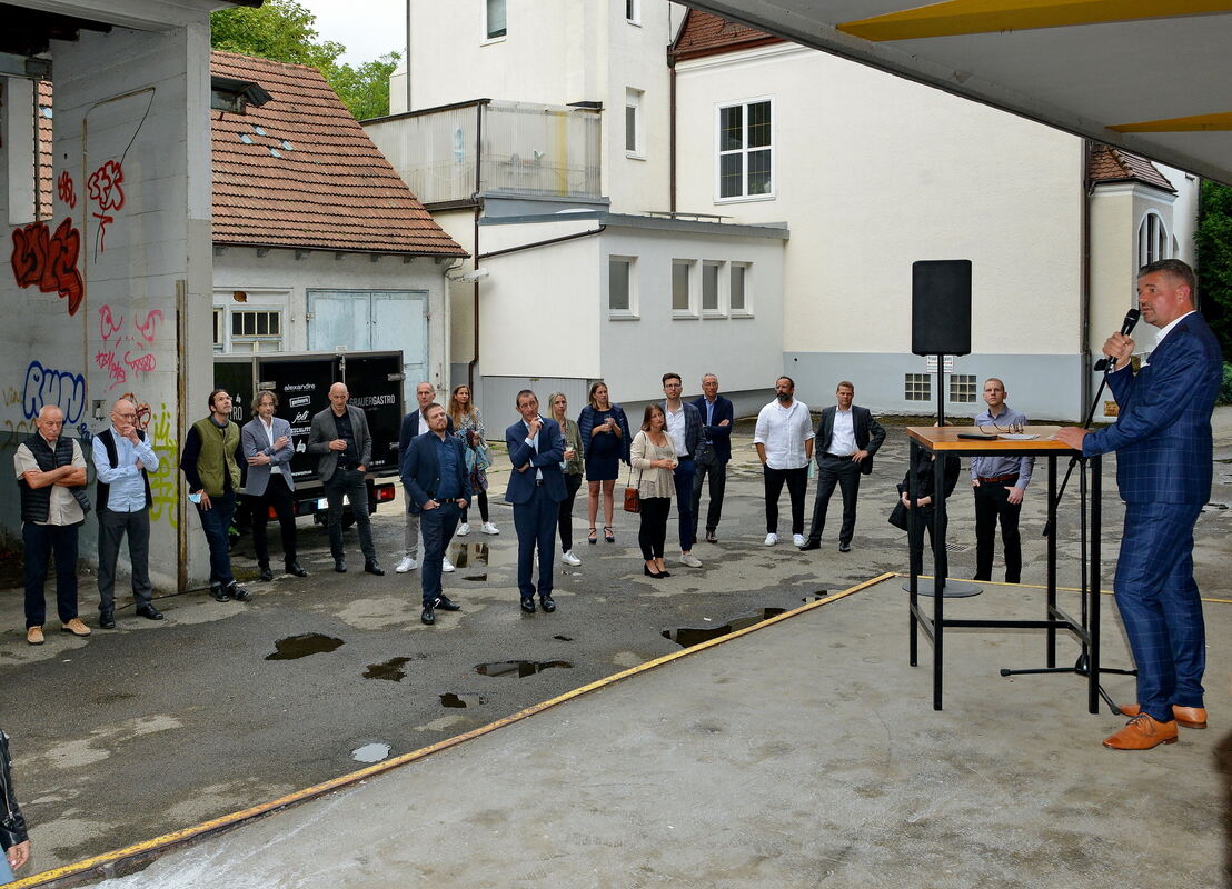 GIEAG-Vorstand Thomas Männel (rechts) informierte bei der Vernissage auch über den aktuellen Stand der Planung. FOTOS: NIETHAMMER