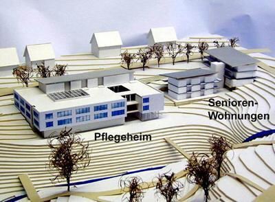 So soll das Seniorenzentrum Gönningen aussehen: Modell-Foto des Büros »zsp-architekten«, von Süden her gesehen.